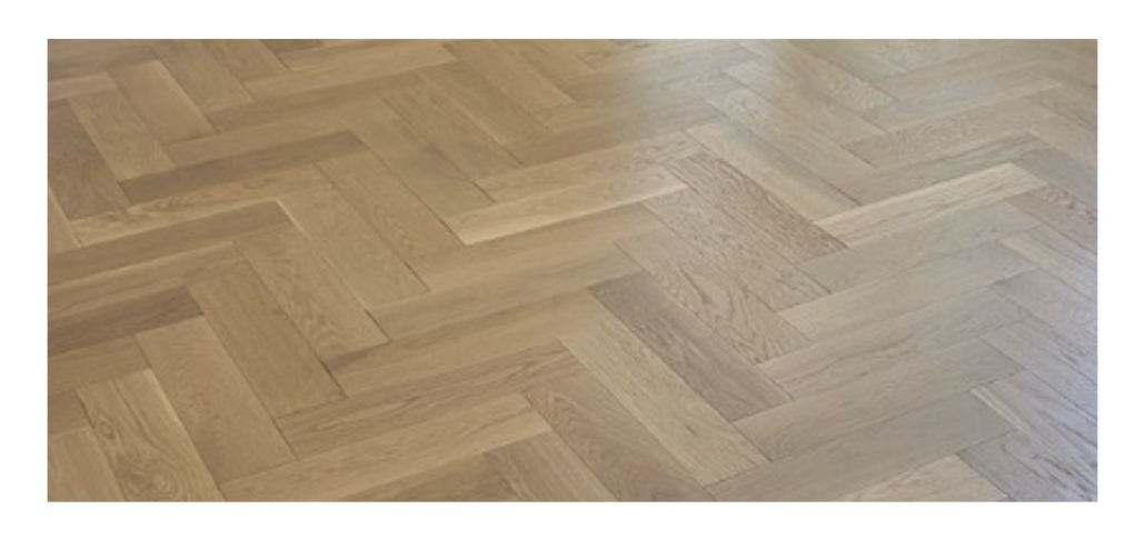 White Oak flooring installed (showing both herringbone and plank flooring installations).